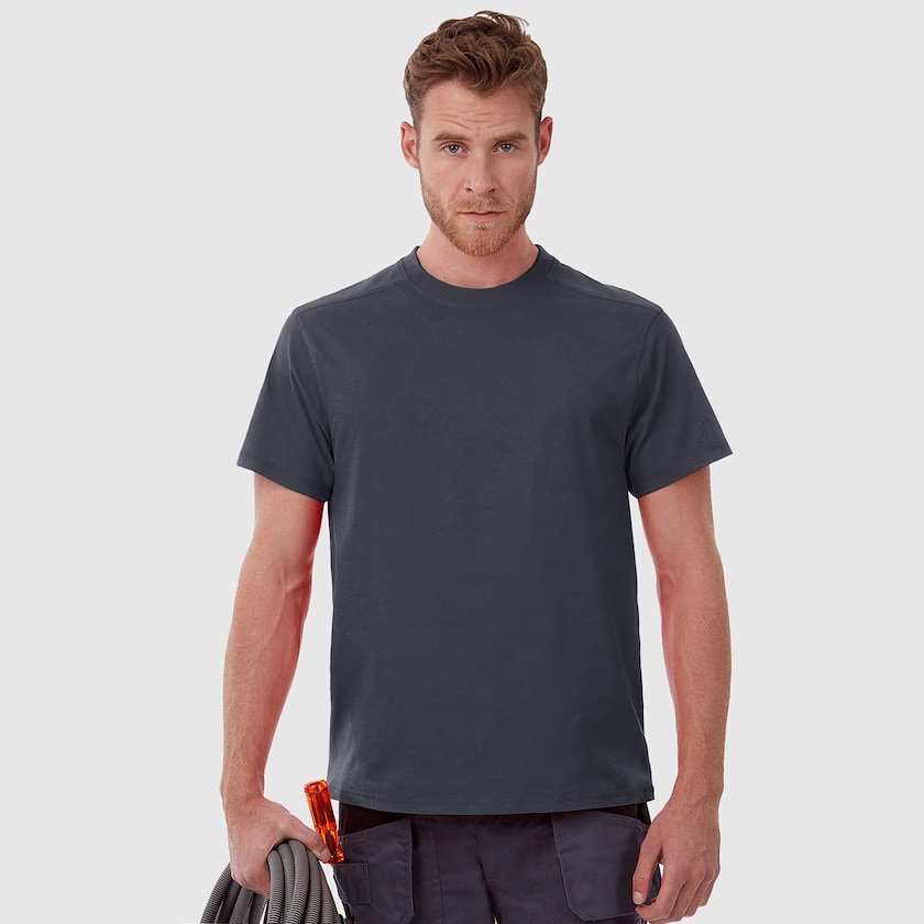 Slidstærk og bekvem arbejdstrøje til professionel brug. T-shirten er fremstillet af kraftigt bomuldsstof på hele 185 gram/m2 og har en række detaljer, som gør trøjen ekstra slidstærk og bekvem (se detaljebillede).