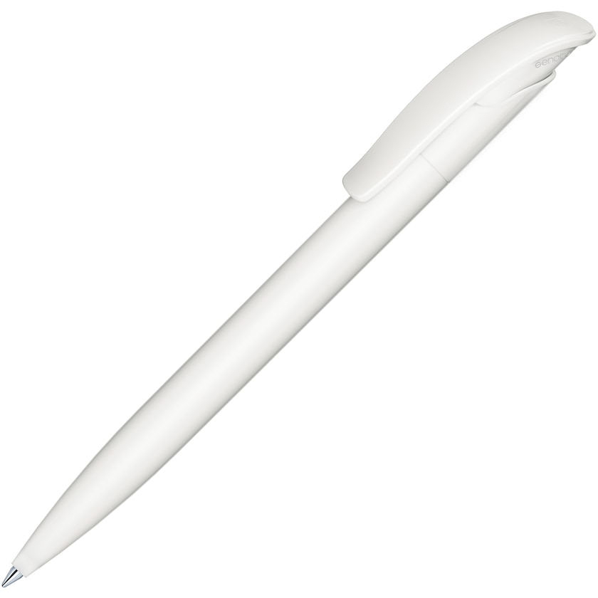 Elegant designet kuglepen i genanvendt plastik. Kuglepennen har en behagelig mat overflade. Blækpatronen er af typen "Magic Flow" og kan holde til at skrive mindst 5000 meter. Vælg mellem blåt og sort blæk. På pennekroppen er teksten "Recycled Material" fortrykt.