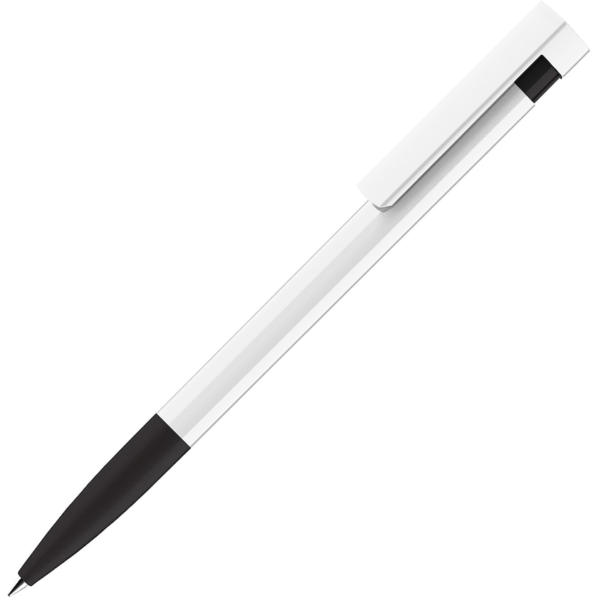 Højkvalitets kuglepen med hvid pennekrop og detaljer i kontrastfarver. Kuglepennen kan fås enten med sort eller blåt blæk. En flot pen i rent design!