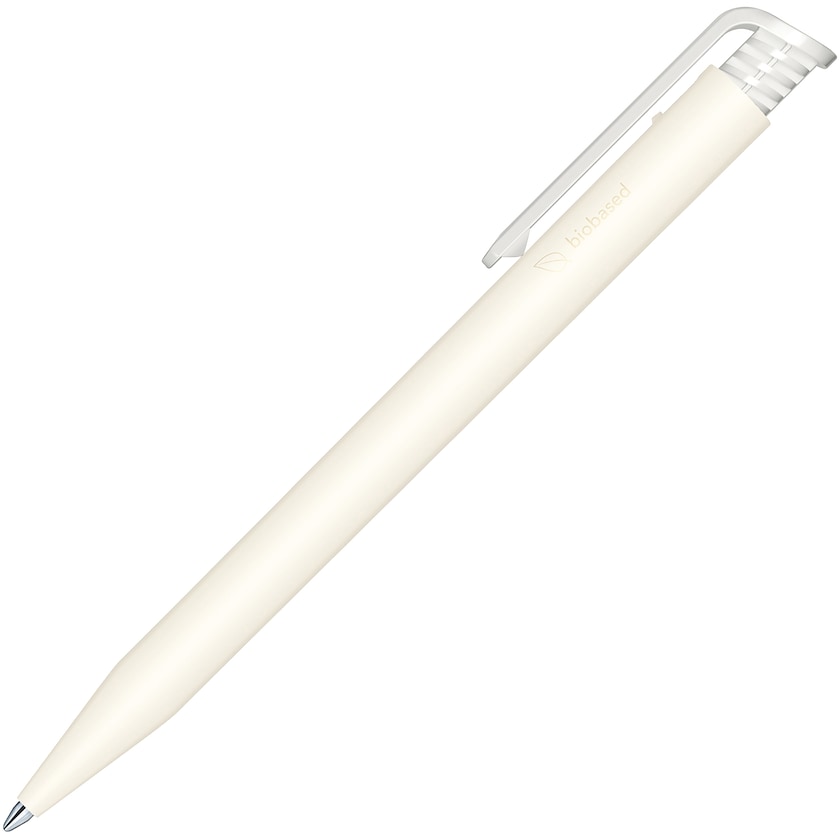 Miljøvenlig kuglepen af høj kvalitet. Kuglepennen er fremstillet af bioplast og har en moderne mat overflade. Øverst på pennekroppen er der fortrykt teksten "biobased".