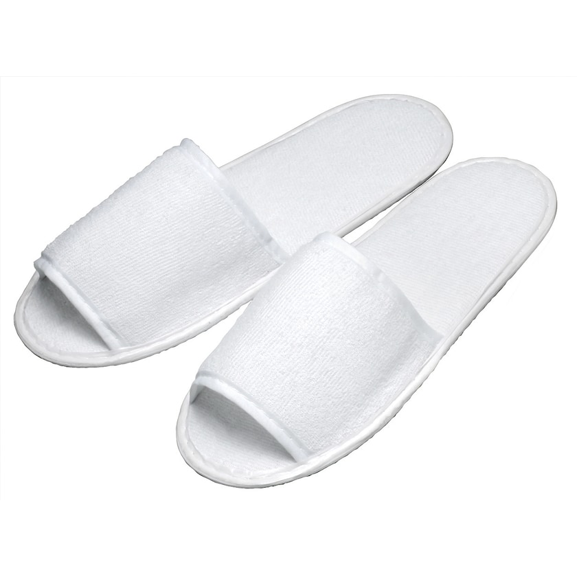 Engangs morgentøfler. Fås i to størrelser. Kun 1-farvestryk er muligt.