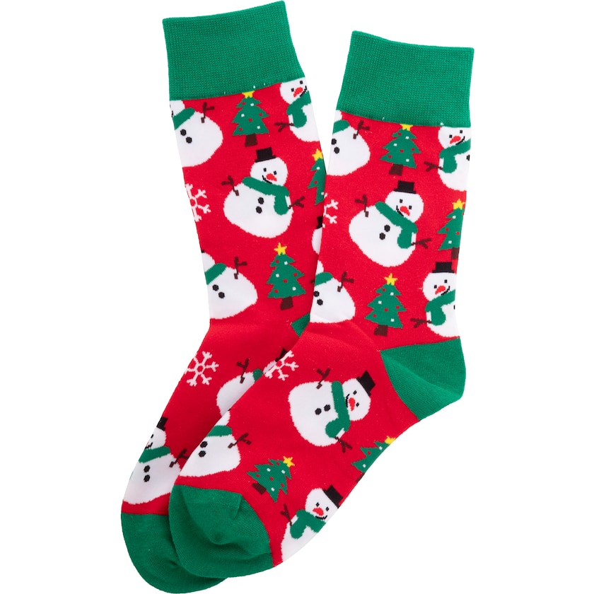 Julestrømper med forskellige motiver. Strømperne er fremstillet af 73% bomuld, 25% rPET og 2% spandex. Bland frit mellem størrelserne 38-42 og 43-46. Trykket laves på papbanderollen som løber rundt om hvert strømpepar.