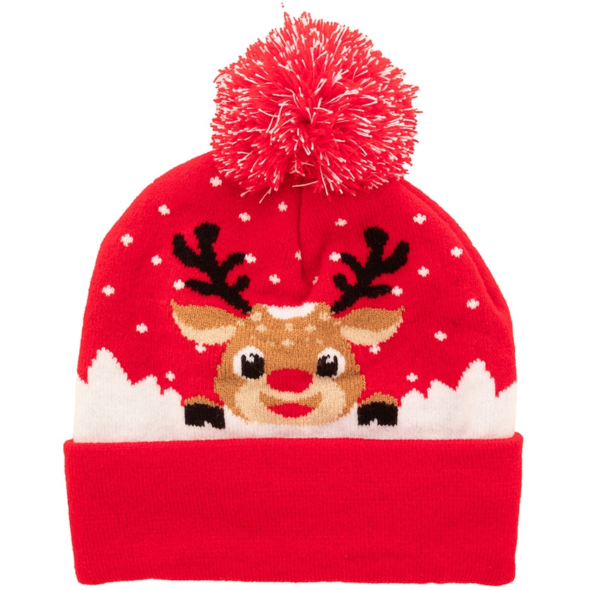 Strikket beanie hue med julemotiv. Beanie huen som gør dig til julefrokostens midtpunkt!
