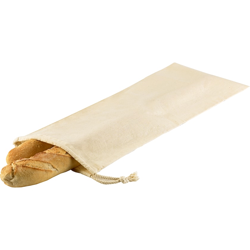 Brødpose med forsynet lukning i naturfarvet bomuldsstof. Posen er tiltænkt anvendelse til når du køber brød i butikken. Bestil brødposer med tryk hos Axon Profil!