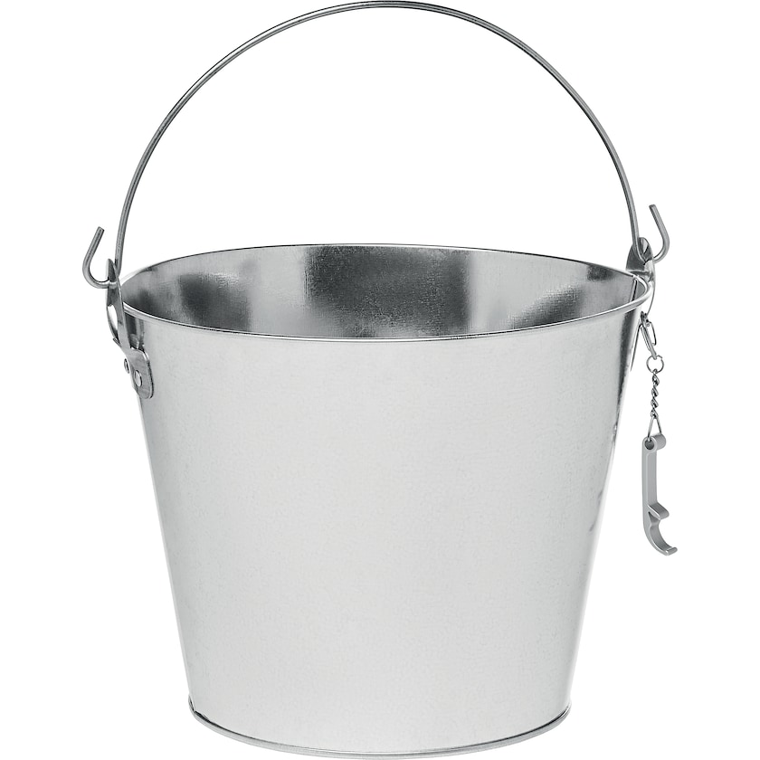 Solid drink spand af metal. Drink spanden kan rumme 4 liter og ved håndtaget er der fæstnet en oplukker. Mærkning laves med lasergravering. Perfekt til sommerfesten!