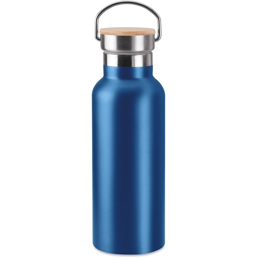 Moderne designet termoflaske i rustfrit stål. Longmont har dobbelte vægge og kan bruges både til varme og kolde drikke. Låget har detaljer i ægte bambus. Flasken er helt lækagesikker.