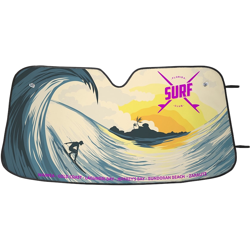 Solbeskyttelse til bilens vinduer med logo udover hele overfladen. Lockhart solbeskyttelse er fremstillet af polyester med bagside med PU samt to lag aluminium bobleplast. Solskærmen er fastgjort med to sugekopper. Da solafskærmningen er fremstillet på fabrikken efter bestilling, er leveringstiden længere end normalt.