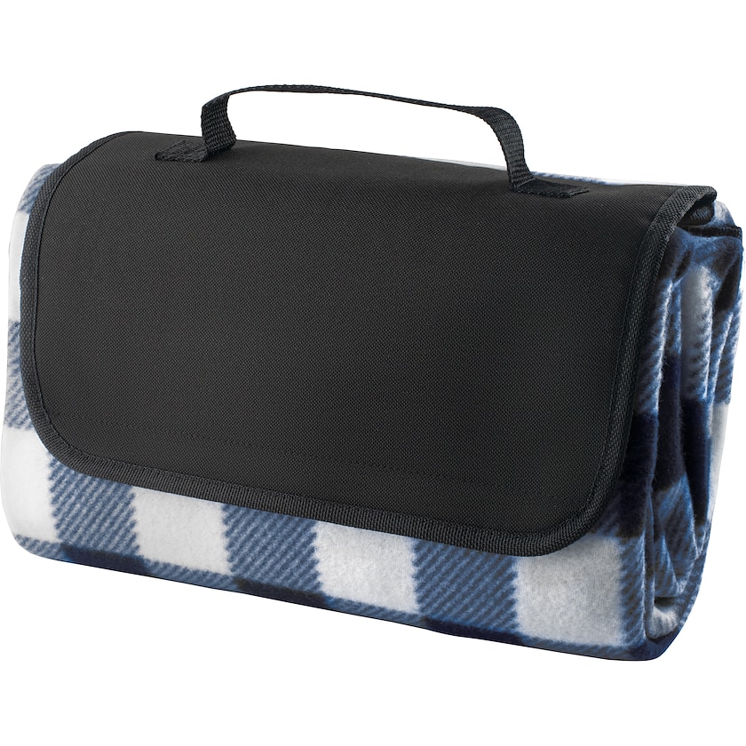 Fleecetæppe til udendørsbrug. Trykket laves på tæppets sorte overflade.
