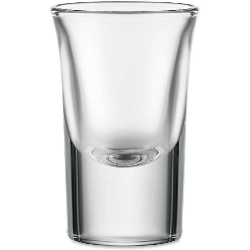 Lille shotglas i glas. Glasset rummer 27 ml. Forsyn glasset med din virksomheds logotype og du har et smart shotglas til næste firmafest!