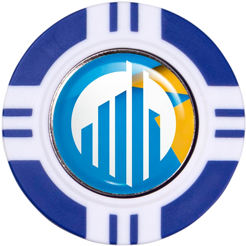 Markeringsmærke af metal i en klassisk poker chips. Trykket laves med digitaltryk hvilket placeres under en beskyttende epoxy overflade.