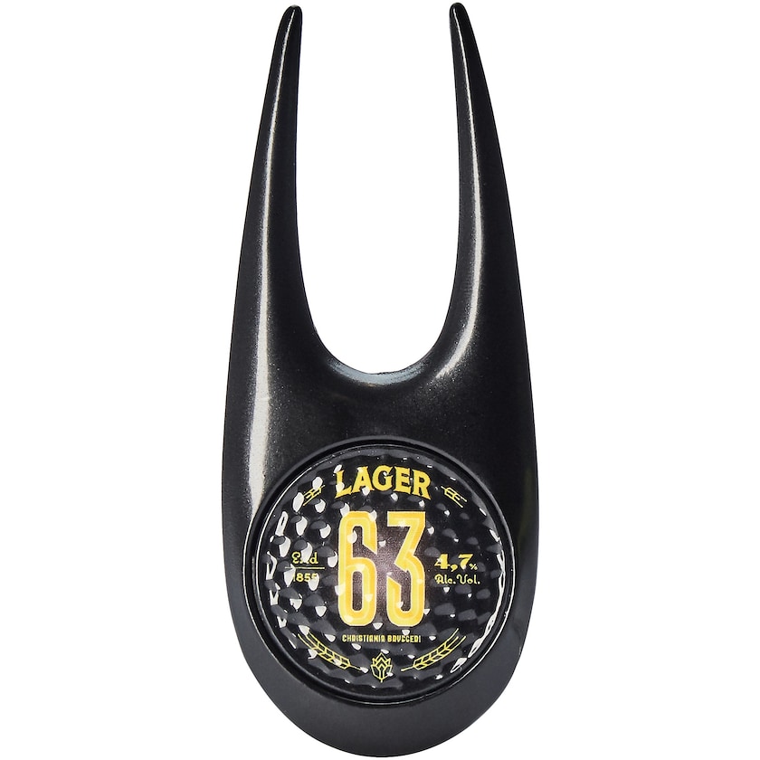 Pitchfork af metal med markeringsmærke. Trykket laves med digitaltryk på markeringsmærket. Markeringsmærket har et flot golfbold-mønster.