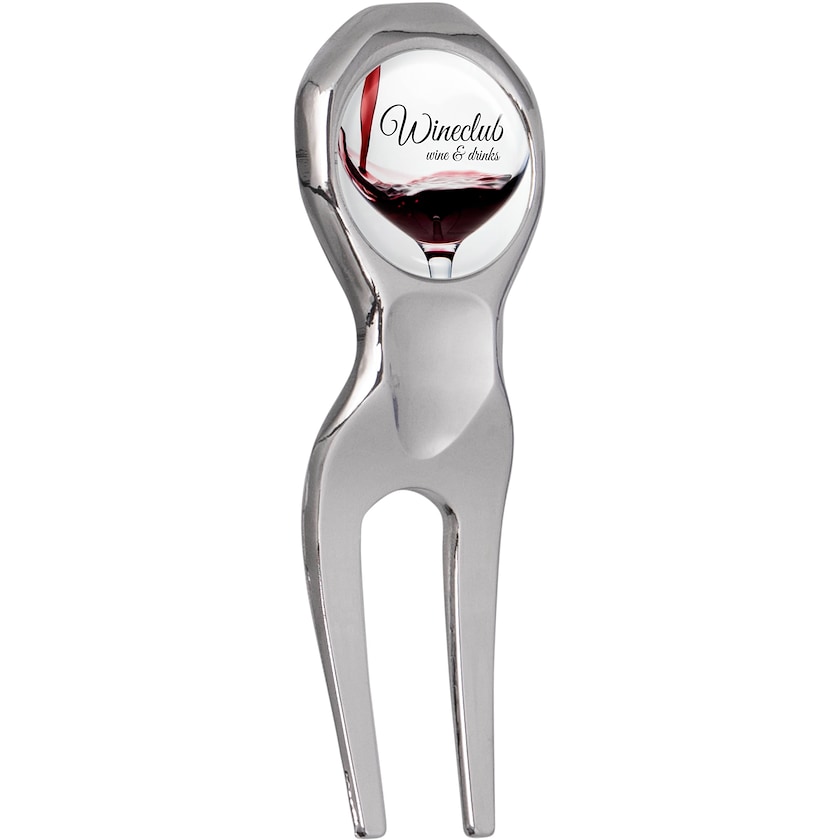 Flot og funktionel pitchfork af metal. Trykket placeres under et beskyttende lag epoxy som giver hele pitchforken et elegant udseende.