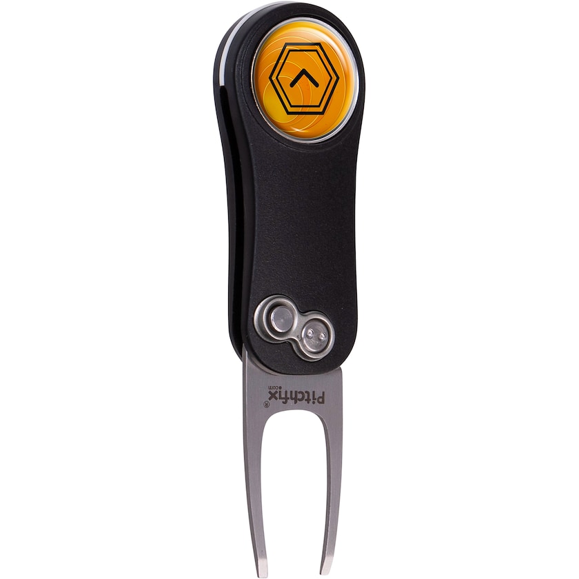 Eksklusiv pitchfork med markeringsmærke. Shinnecock er fremstillet af aluminium og ABS. Den foldes ud automatisk og foldes sammen manuelt. Trykket, som laves på markeringsmærket, dækkes af et beskyttende lag epoxy.