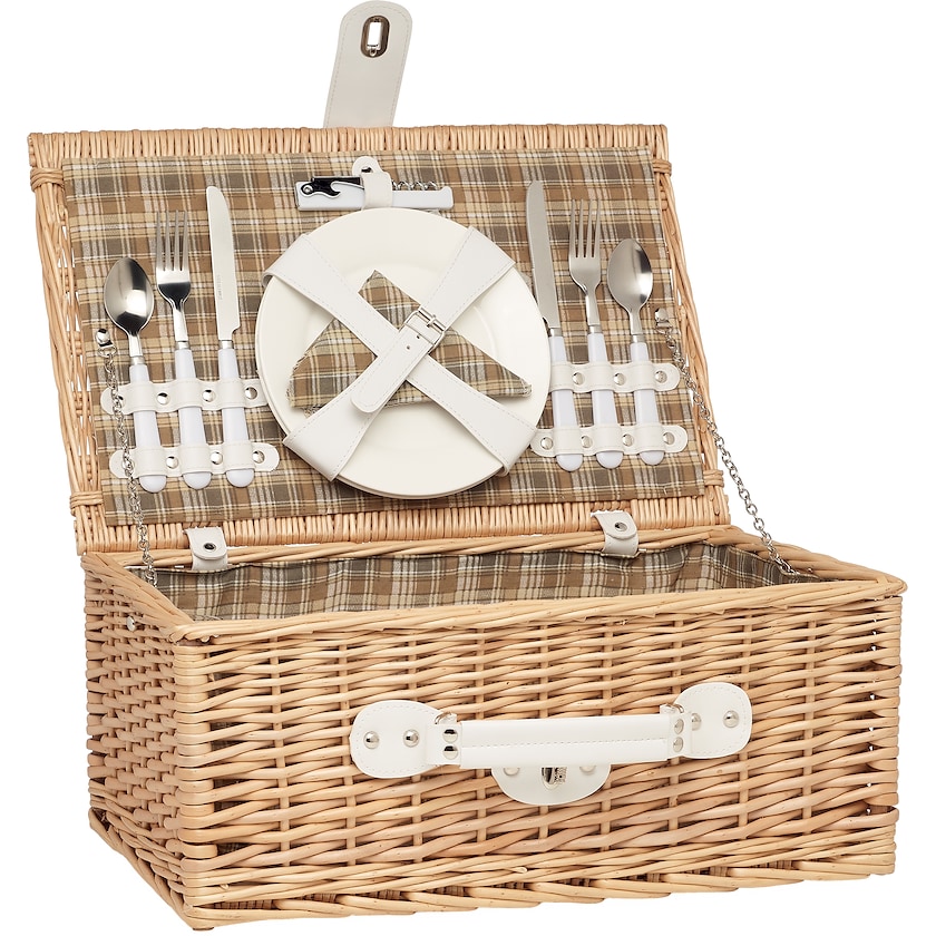 Picnickurv med alt til en skovtur for to. Trykket laves på picnickurvens spænde. En flot sommergave til personalet eller til vigtige kunder.
