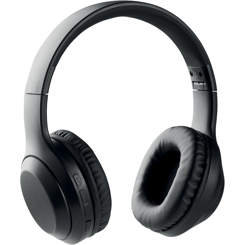 Trådløse foldbare høretelefoner. Høretelefonerne har hands-free-funktion og indbygget mikrofon. Spilletiden er ca. 4 timer. Leveres i en opbevaringspose hvorpå trykket laves.