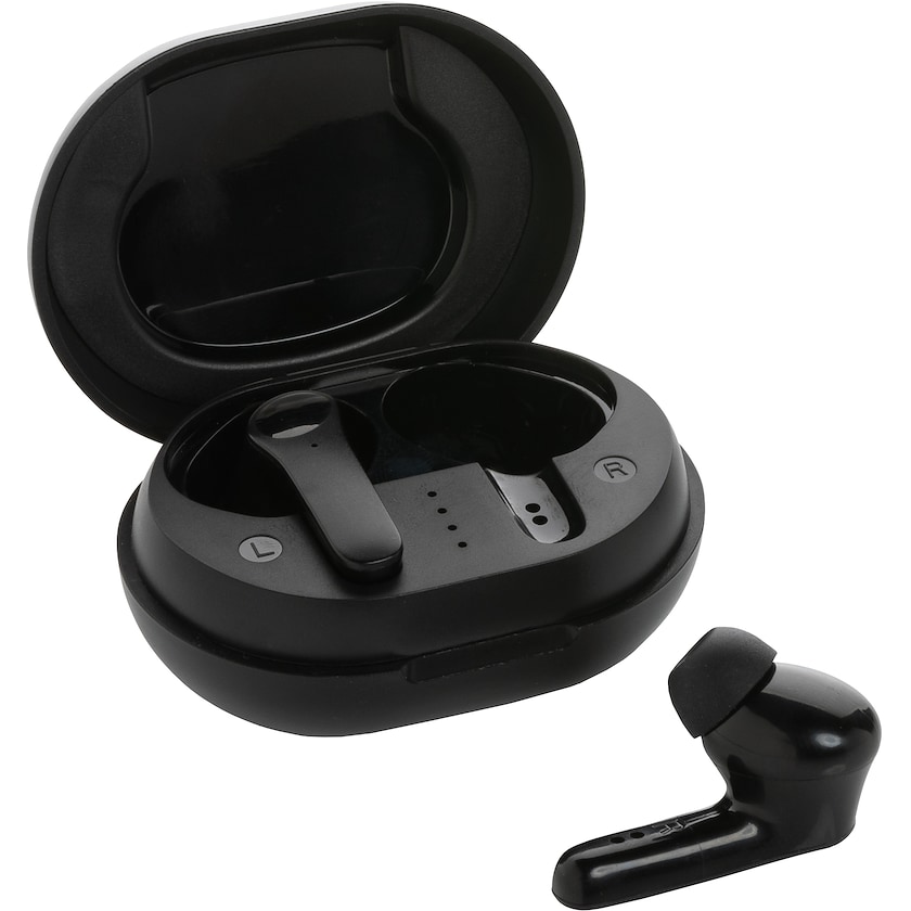 Trådløse høretelefoner i miljøvenligt materiale. Høretelefonerne anvender BT 5.0 for bedst mulige lydkvalitet. Opbevaringsæsken fungerer også som opladerstation for høretelefonerne. Batteriet klarer op til 4 timers spilletid. Fuld opladning tager 1,5 time. Hele sættet er fremstillet i genbrugt plastik.