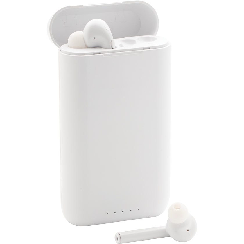 Høretelefoner med indbygget powerbank. Høretelefonerne bruger BT5.0 for enkel tilslutning til din mobiltelefon. Batteriet klarer en spilletid på op til to timer. Opladning tager 4 timer. Powerbanken har kapaciteten 5.000 mAh og kan oplade din mobiltelefon to gange.