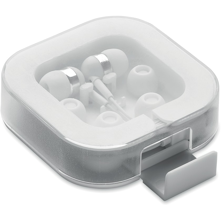 Høretelefoner med etui med mobilholder. Kablet har en længde på 120 cm. Ekstra silikone covers i tre forskellige størrelser er inkluderet.