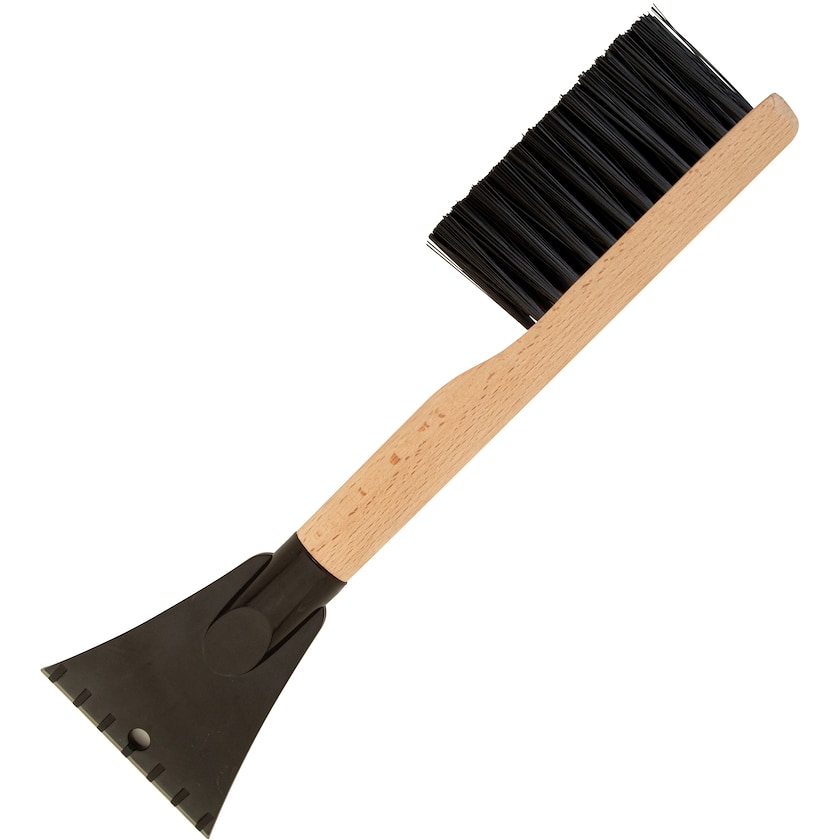Isskraber af bambus og genanvendt ABS. Nevis fungerer ikke kun som isskraber men også som børste for at fjerne løs sne.