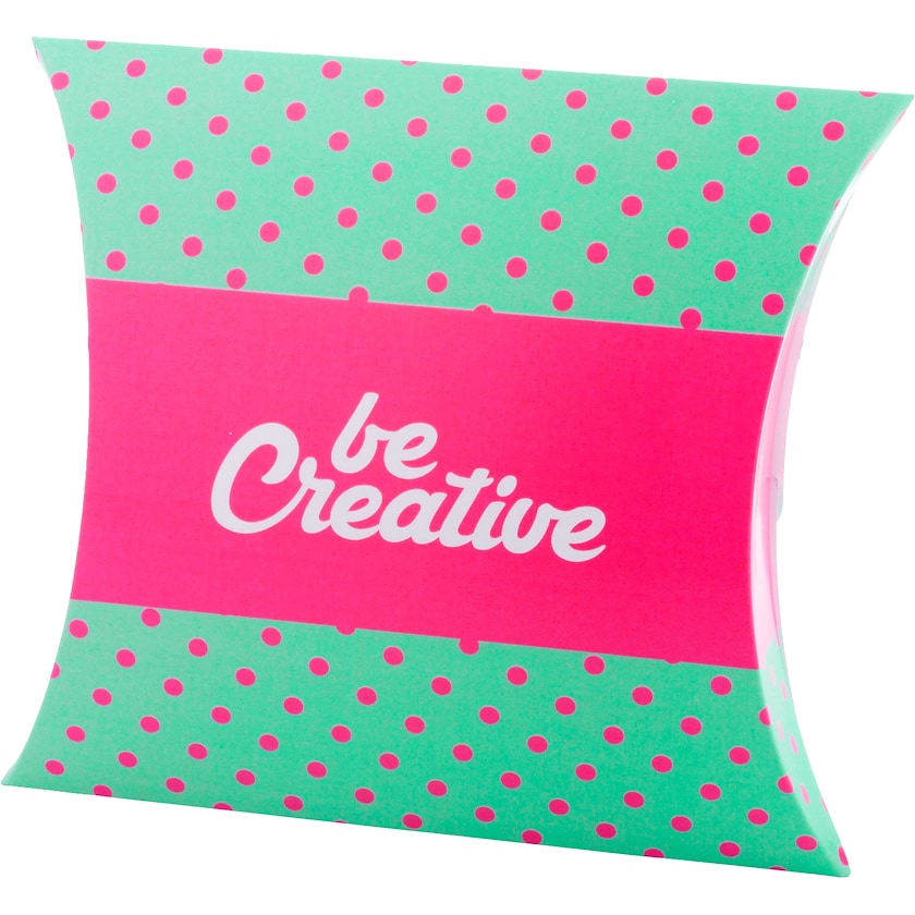 Gaveæske med pudeform med selvlåsende lukning. Hele kartonens yderside trykkes efter dit ønske. Bagsiden er forsynet med en lukning som gør at kartonen ikke behøves at tapes sammen. Leveres flad.
