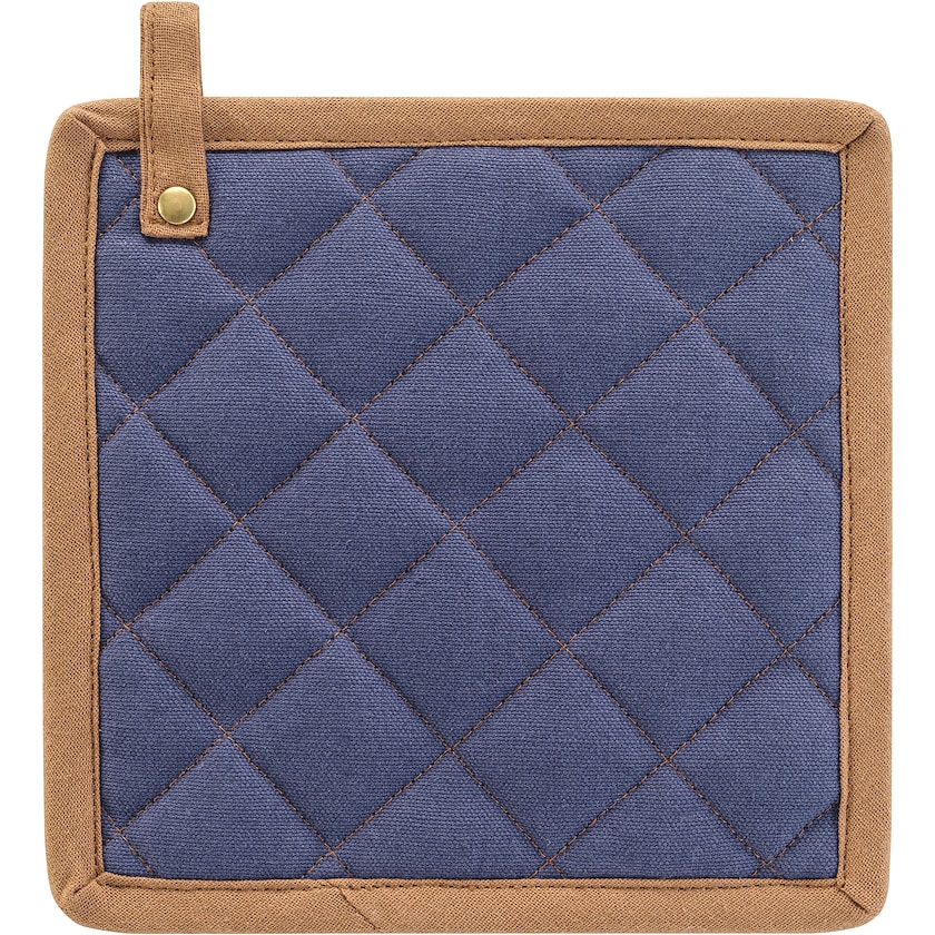 Flot grydelap af bomuld. I det ene hjørne er der en løkke. Trykket placeres på bagsiden.