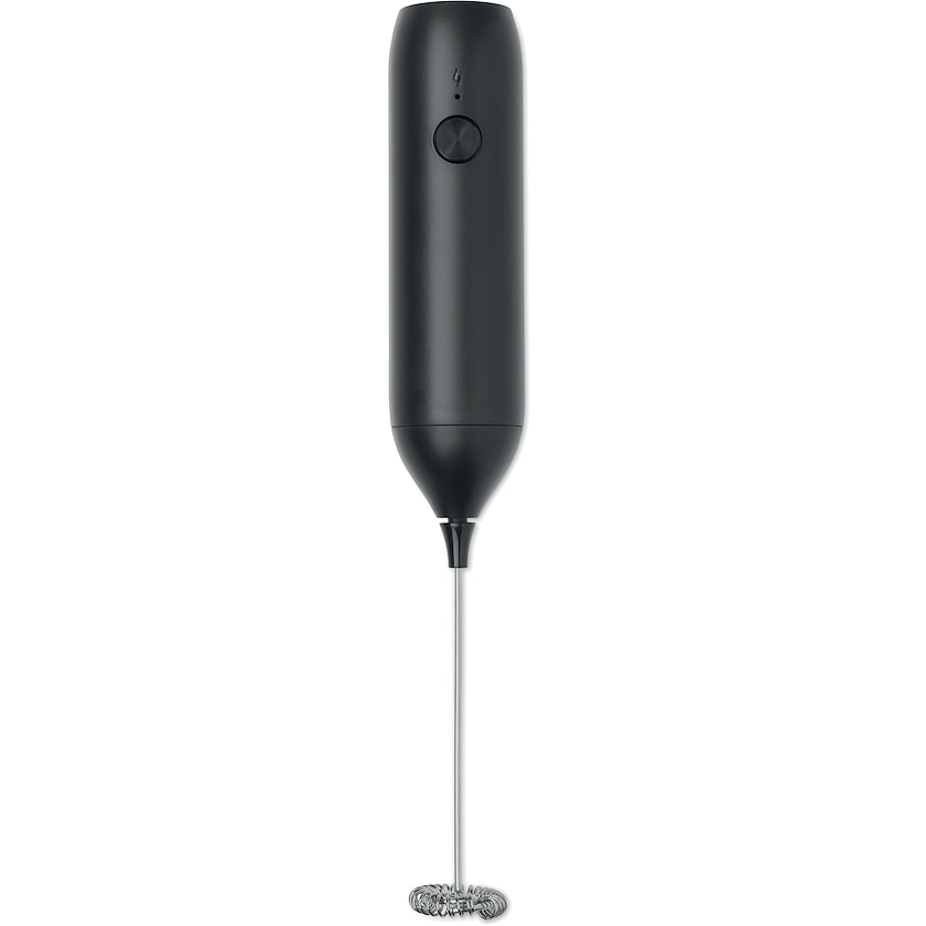 Elektrisk mælkeskummer med logo. Caistor drives med et indbygget genopladeligt batteri. USB-type-Ce-opladerkabel inkluderet.