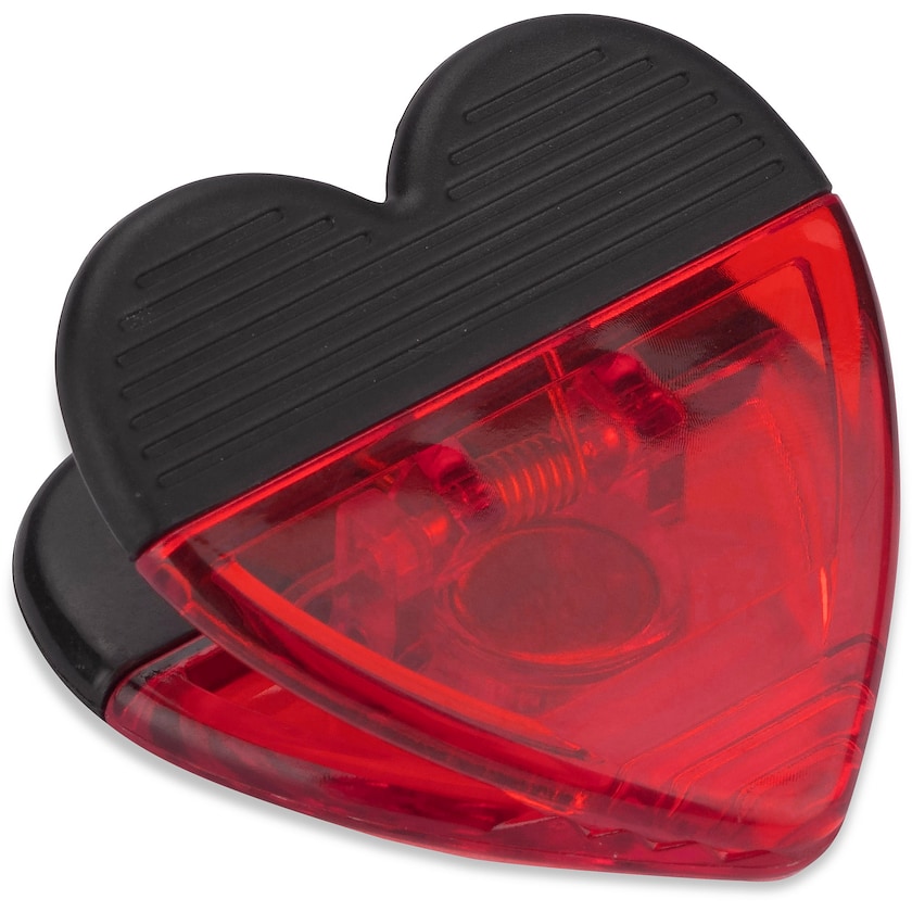 Hjerteformet magnet med logo. Lovely har en kraftig klemme som kan holde på kvitteringer, billetter og lignende.