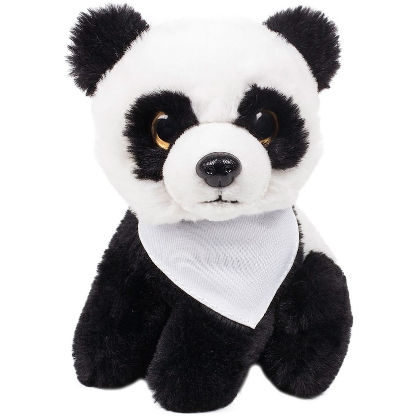 Blød, krammeagtig og meget sød panda. Trykket laves på tørklædet. Tørklædet leveres separat fra bamsedyret.