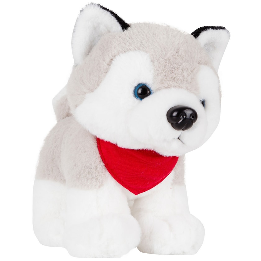 Nuttet hund af typen Siberian husky. Trykket laves på bamsens røde tørklæde (leveres separat). En krammegave til alle hundeelskere!