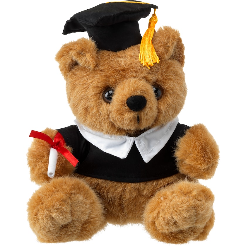 Teddybjørne med eksamensklæder. I teddybjørnens ene hånd holder om et eksamens diplom. Kun 1-trykfarve er mulig.