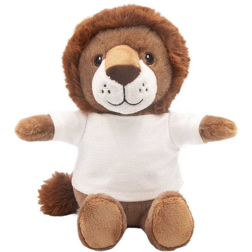 En sød løve lavet i miljøvenligt materiale. Leonard er fremstillet i rPET, dvs. genbrugte PET-flasker, og er GRS-certificeret. Trykket laves på t-shirten som leveres separat fra bamsedyret.
