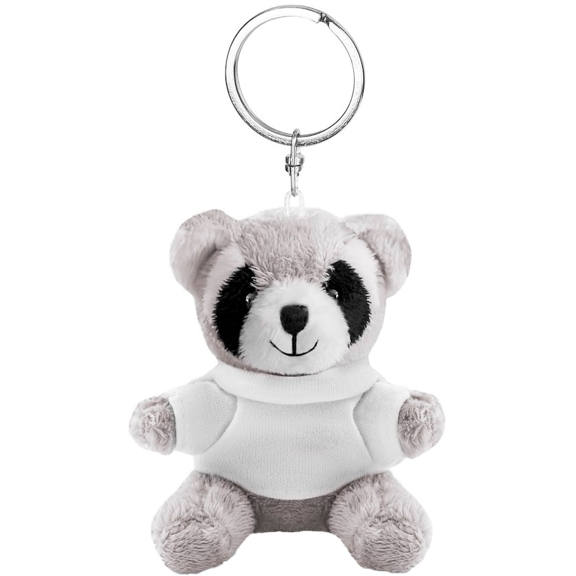 Nøglering med lille vaskebjørn. Trykket sker på vaskebjørnens t-shirt som leveres seperat.