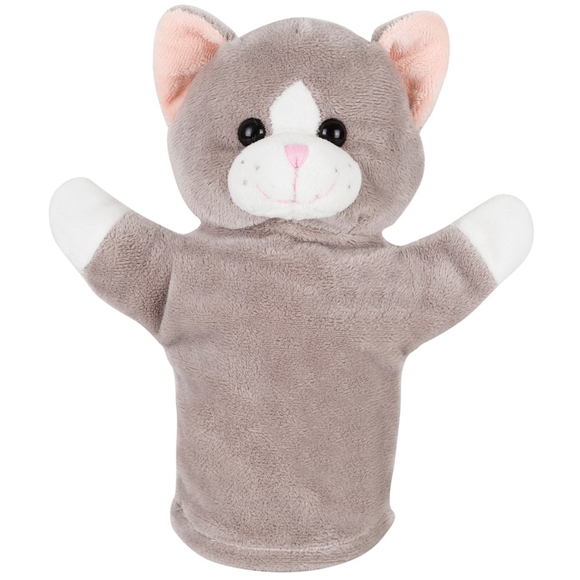 Hånddukke designet som en sød kat. Treyton er fremstillet af behagelig plys. Trykket laves på hånddukkens bryst.
