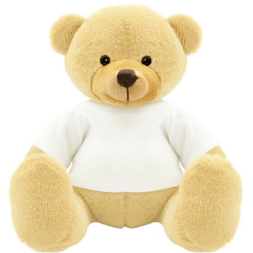 Krammevenlig bamse med hvid trøje med plads til tryk.