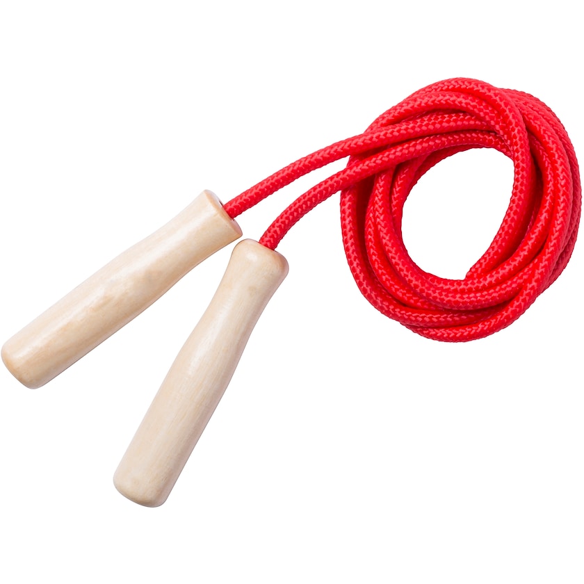 Sjippetov med træhåndtag. Trykprisen henviser til tryk eller gravering på et af håndtagene.