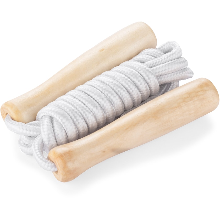 Sjippetov for både børn og voksne. Sjippetovet har håndtag i træ og reb af polyester. Mærkning laves med tryk eller lasergravering på et af håndtagene.