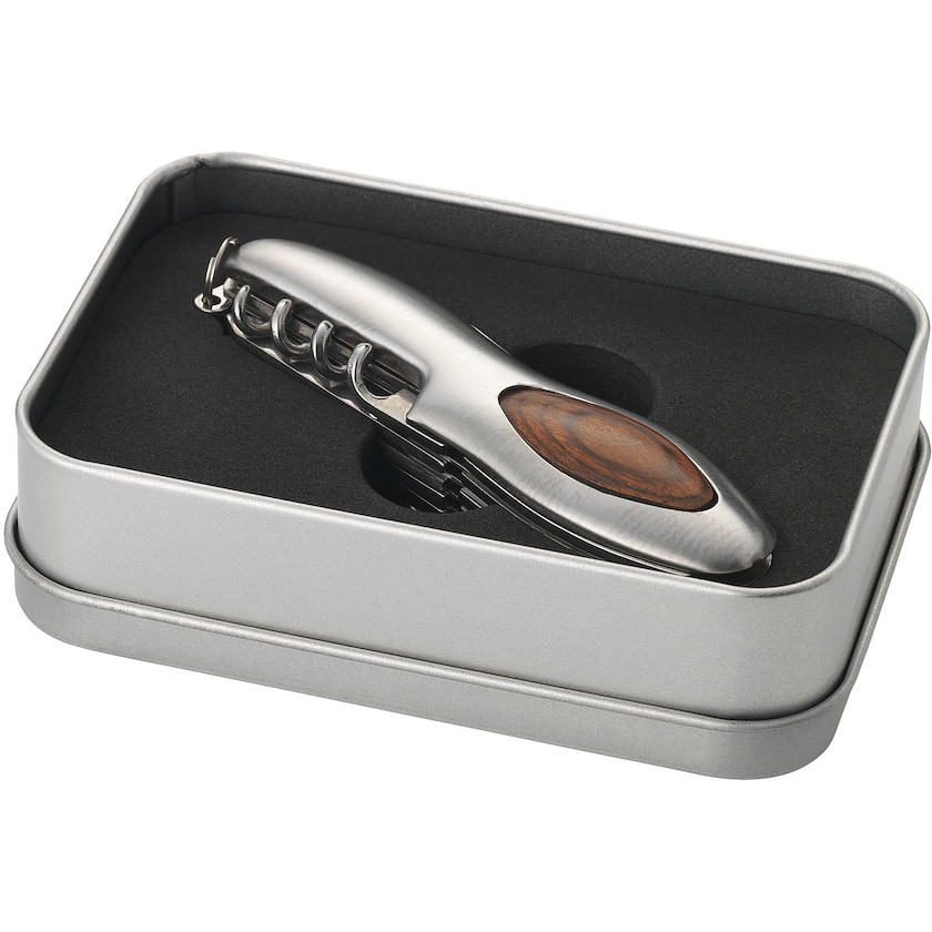 Eksklusiv lommekniv med hele 15 funktioner. Rodney er fremstillet af metal med træindlæg. Lommekniven bliver leveret i en metalæske. Mærkning kan enten ske på selve kniven eller på metalæsken.