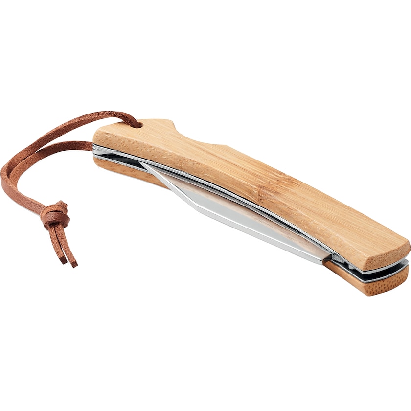 Lommekniv i rustfri stål og bambus. Perfekt til camping og tur ud i naturen.
