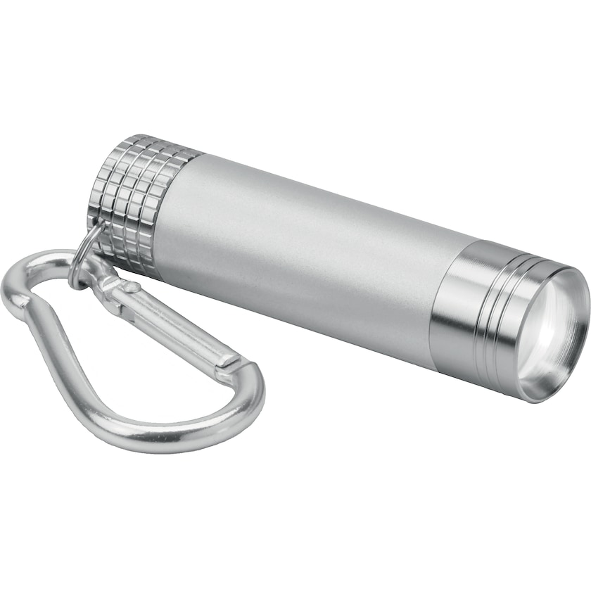 Udvidelig lommelygte hvor din logotype lyser op. Lommelygten er fremstillet af aluminium og drives af 4 stk. LR44-batterier (inkluderet). Når lommelygten lasergraveres lyser motivet op.