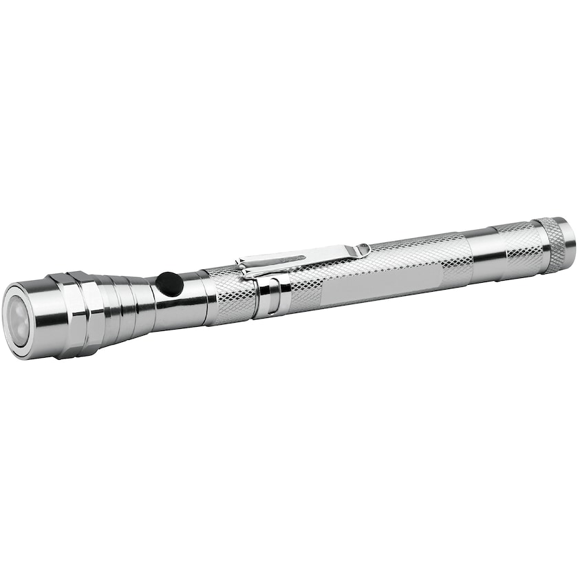 Teleskoplommelygte med 3 stk. LED-lys. Electra er udstyret med en magnet og kan vippes, så den kan give lys i de mest utilgængelige områder. Lommelygten er lavet udelukkende af metal.