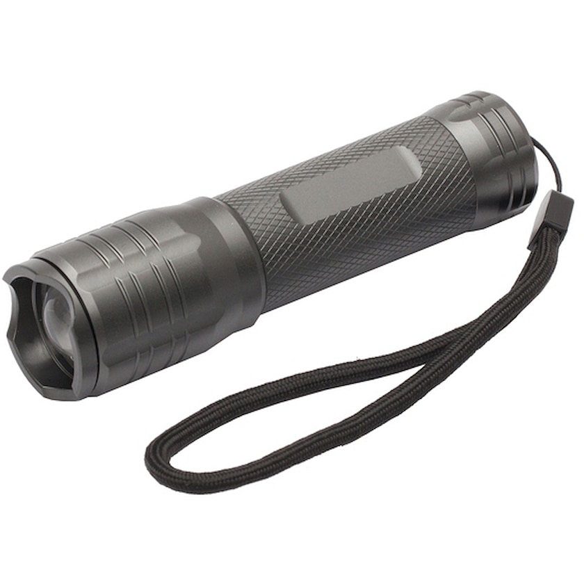 Højkvalitets lommelygte med tre lysindstillinger. Vælg mellem stærk, strømsparetilstand og blinkende lys. Drives med 3 stk. AAA-batterier (medfølger). Leveres i opbevaringsetui af nylon. Har en kapacitet på 250 lumen, 150 meters rækkevidde og 100.000 timers LED-brændetid. Mærkningen laves med lasergravering.