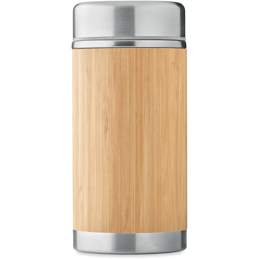 Madtermoflaske i rustfri stål og bambus. Bristow har dobbelte vægge hvilket gør at indholdet holdes varm i lang tid. Ved 1-trykfarve er trykfladen på hele 230 x 100 mm.