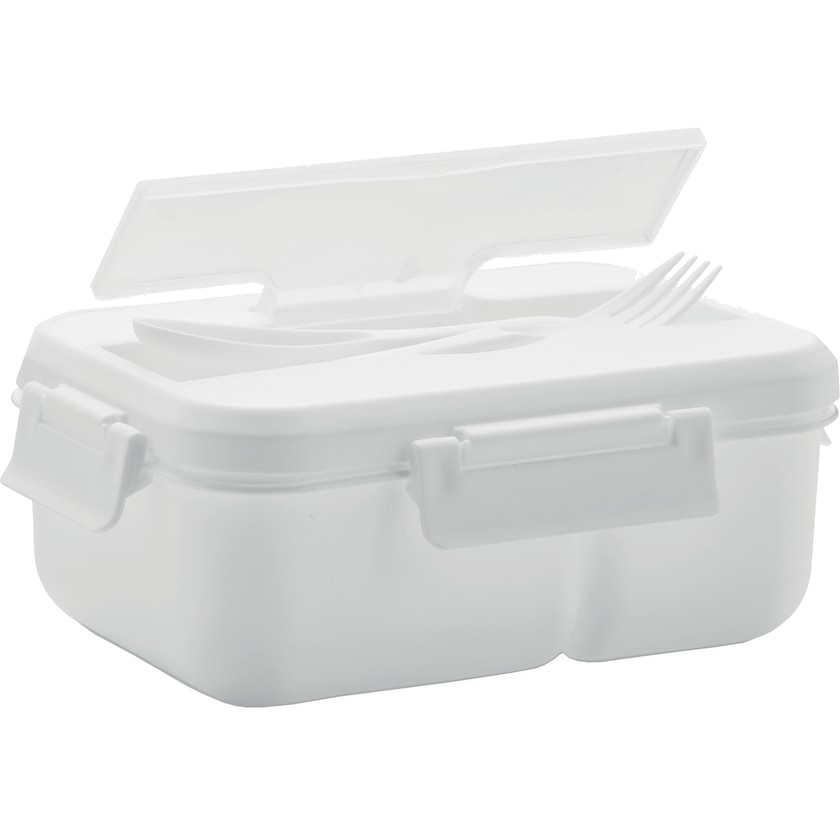 Stor madkasse med tilhørende bestik. På grund af to separate rum blandes made ikke sammen. Perfekt til både frokost på arbejde eller på picknick.