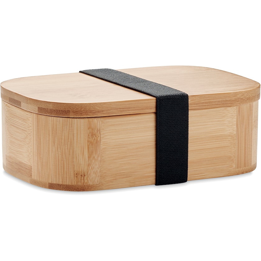 Madkasse i ægte bambus. Den indvendige fordeler kan flyttes så at størrelsen på opbevaringsrummene ændres. Låget holdes på plads med et elastisk nylonbånd. Madkassen er kun beregnet til tørfoder.