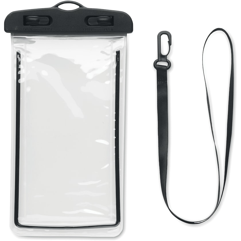 Vandtæt mobillomme med aftagelig keyhanger. Mobillommen har vandtætheden IPX 6. Passer til mobiltelefoner med en skærm på op til 6,7 tommer. Kun 1-trykfarve er mulig.