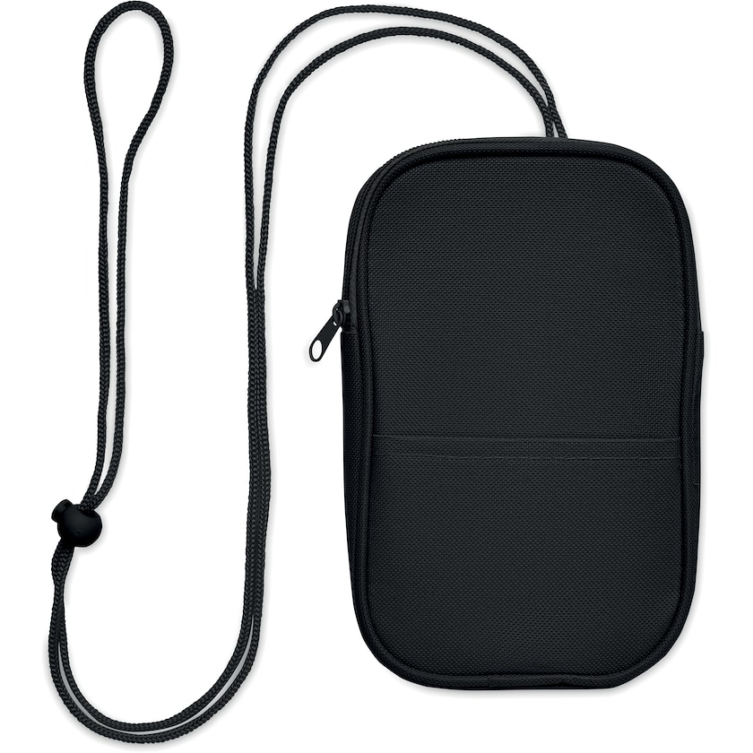 Billig mobiltaske af genbrugsmateriale. Tasken har et hovedrum med lynlås. Skulderremmen er justerbar.
