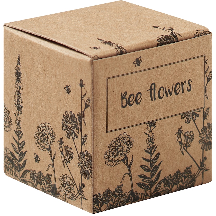 Sæt med plantekugle i naturfarvet karton. Plantekuglen indeholder frø til blomster, som bier holder meget af. Trykket laves på topsiden af kartonen. Fremstillet i EU.