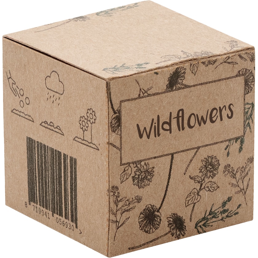 Plantekugle med frø til vilde blomster. Leveres i en naturfarvet karton hvor trykkes laves på. Fremstillet i EU.