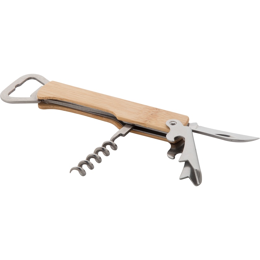 Vinoplukker i rustfri stål og bambus. Indeholder proptrækker, kniv og to slags oplukkere. Leveres i brun gaveæske.
