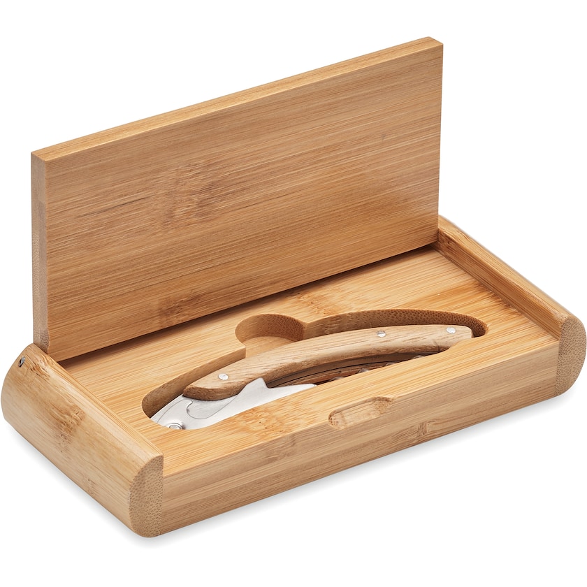 Eksklusiv proptrækker af bambus og rustfri stål. Leveres i en gaveæske af bambus.